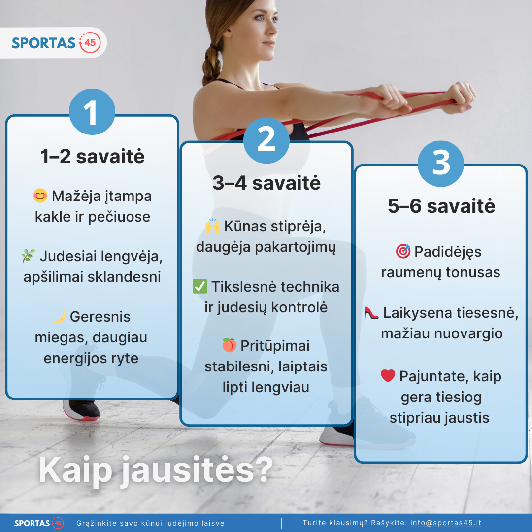 2 savaitė – 💨 Judesiai sklandesni, daugiau pakartojimų